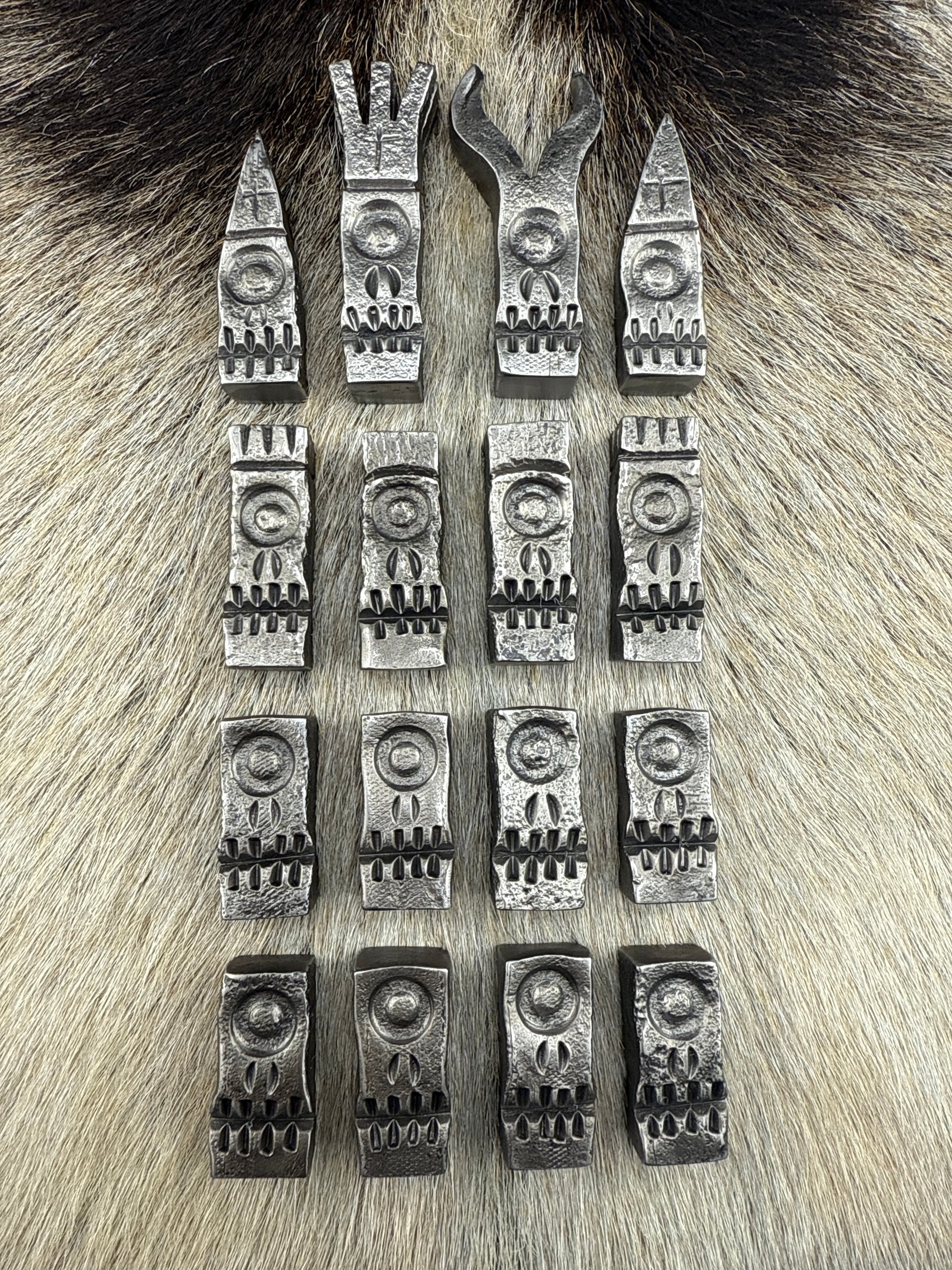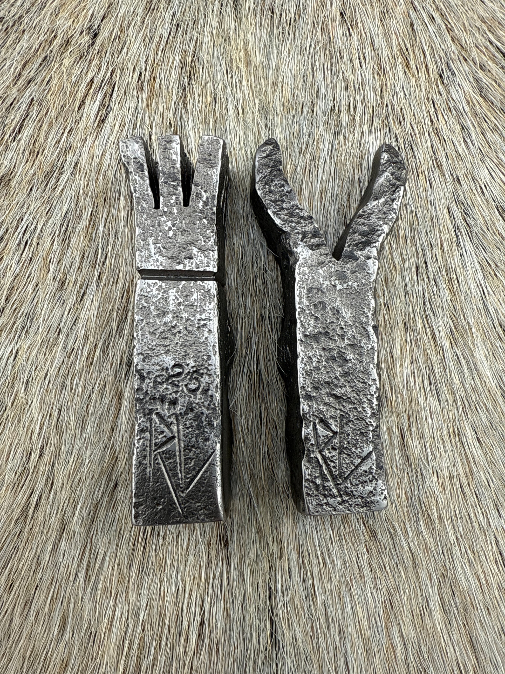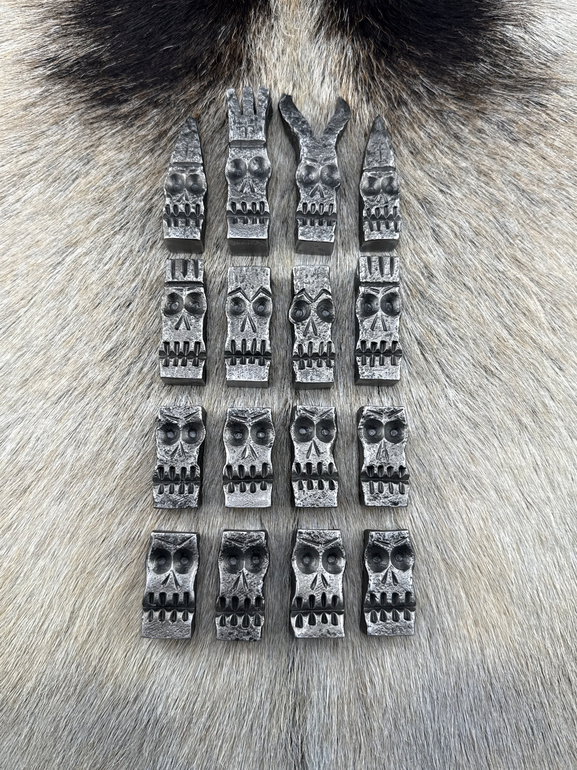 This set is handforged from salvaged railroad spikes, so every piece has a different texture making each one a unique item. Between the hammer and chisel marks and natural erosion of the pieces, there will never be a replica of any chess set from RustLand.