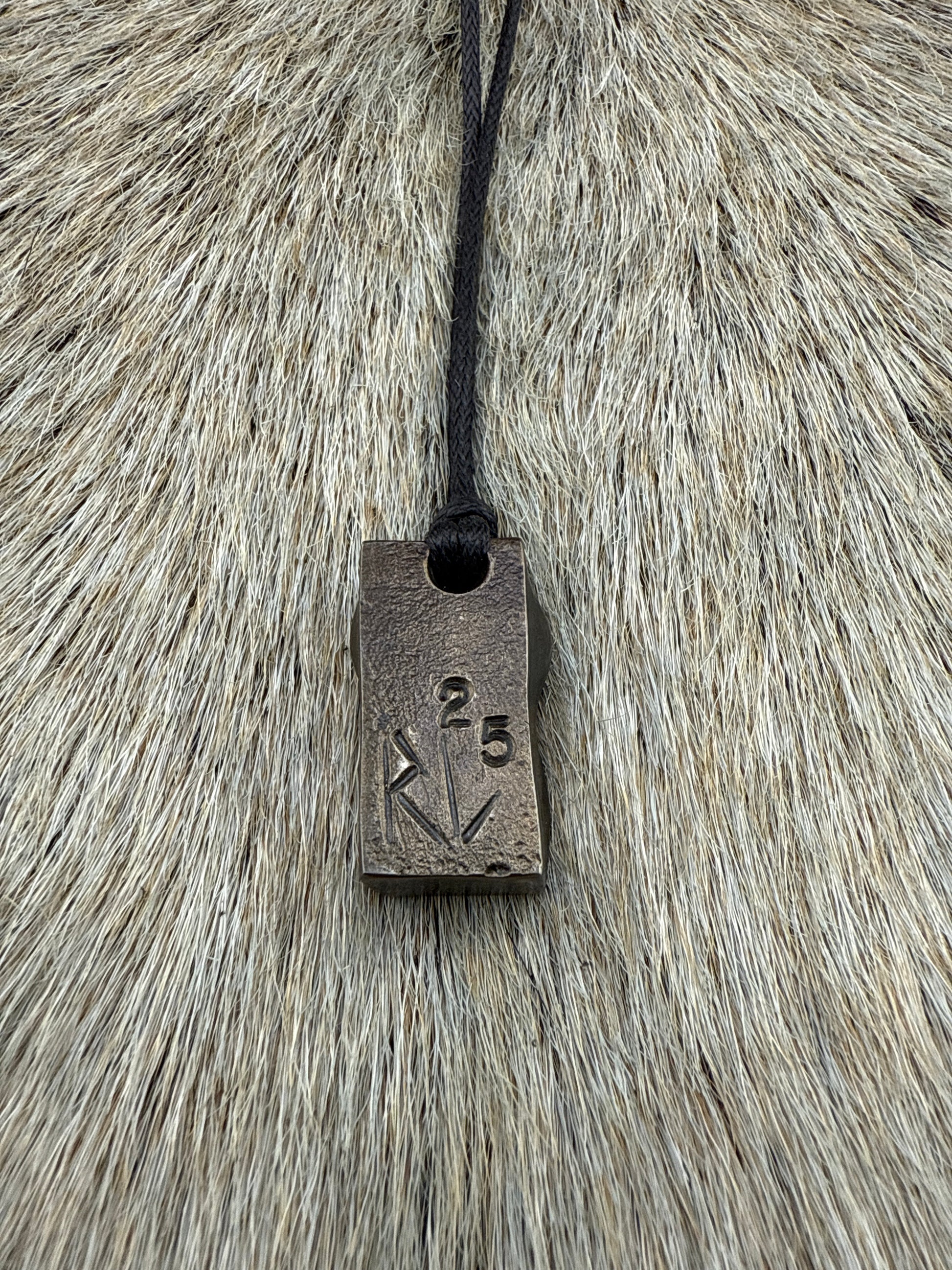 Hand forged skull pendant with a torched finish and waxed string cord.