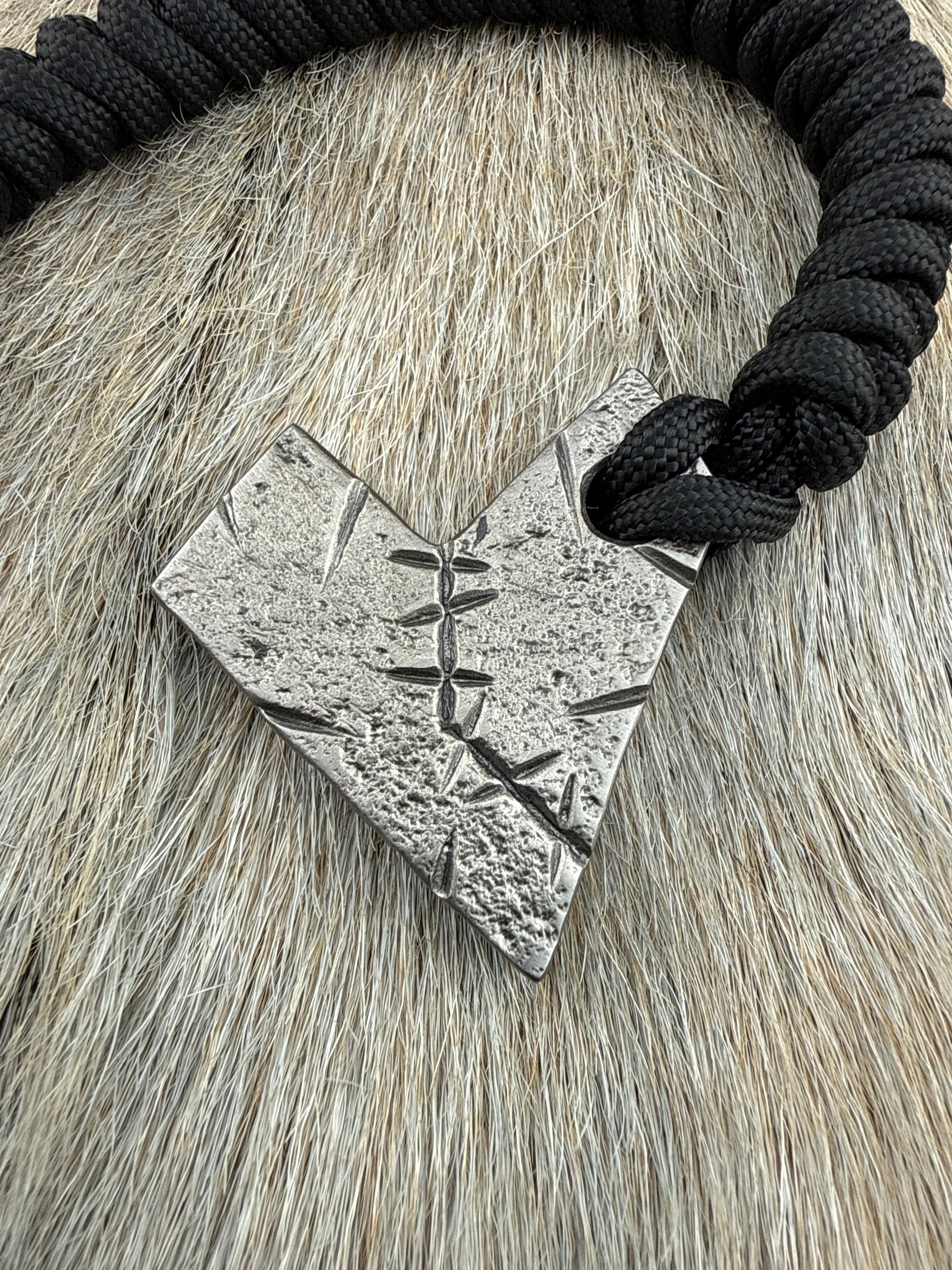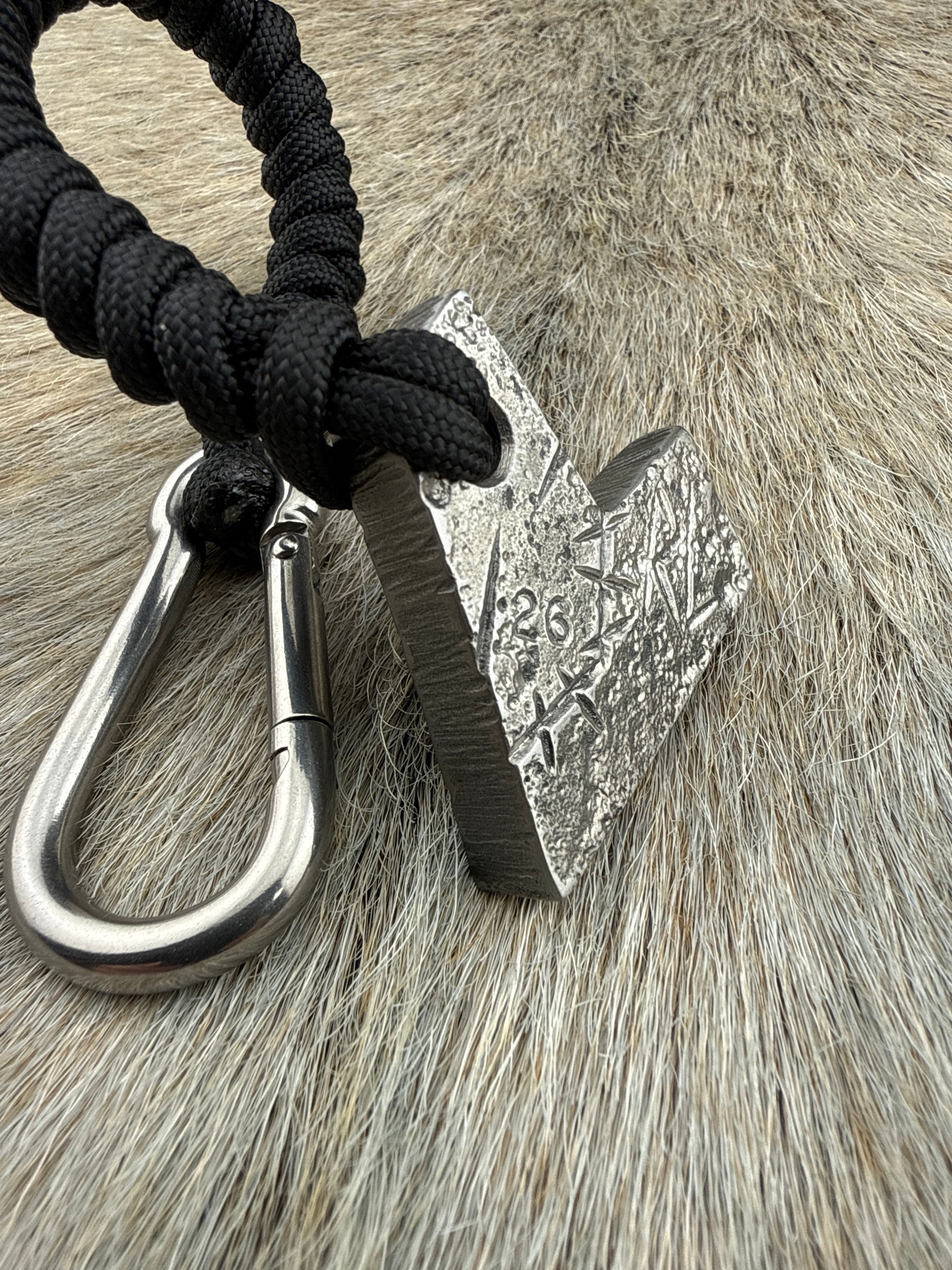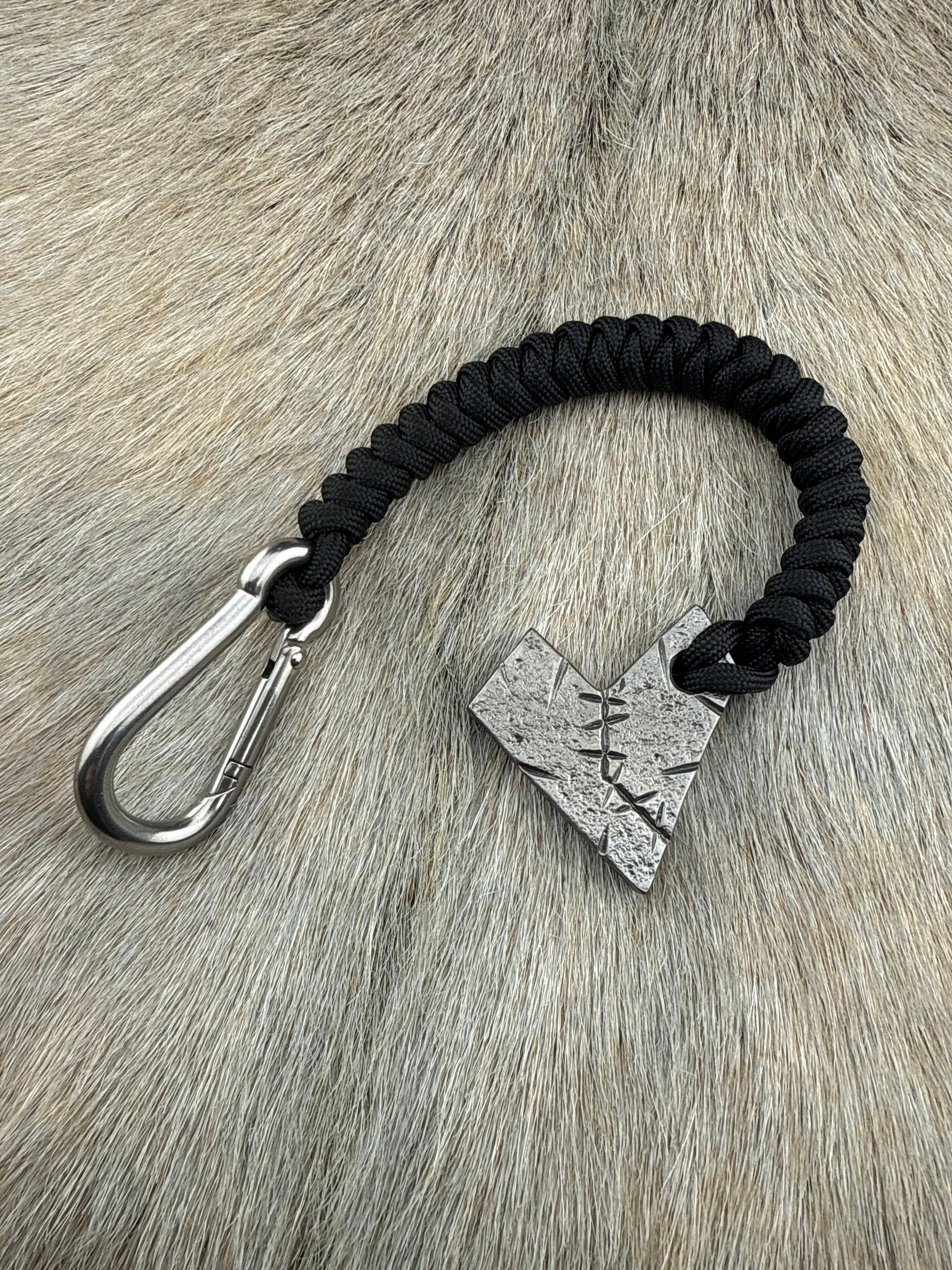 Forged HeartCrusher lanyard made from 5/16” steel plate with 550 paracord and stainless steel carabiner.