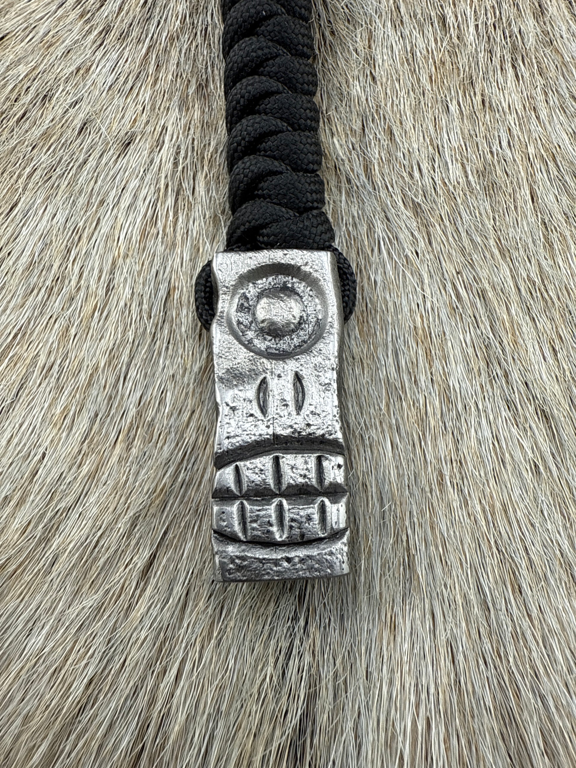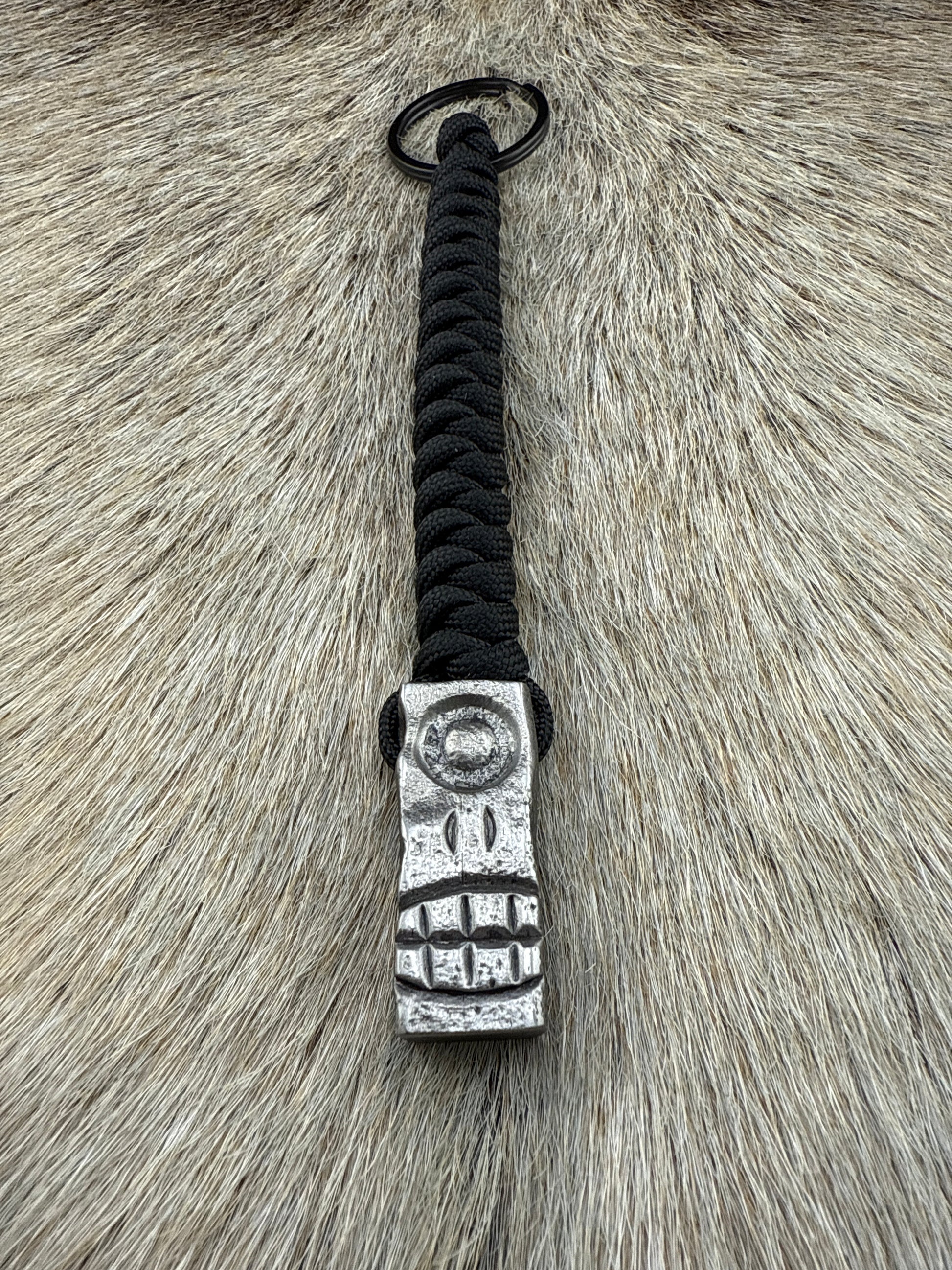 PocketCrusher Cyclops version forged from a railroad spike with 550 paracord lanyard and keyring.