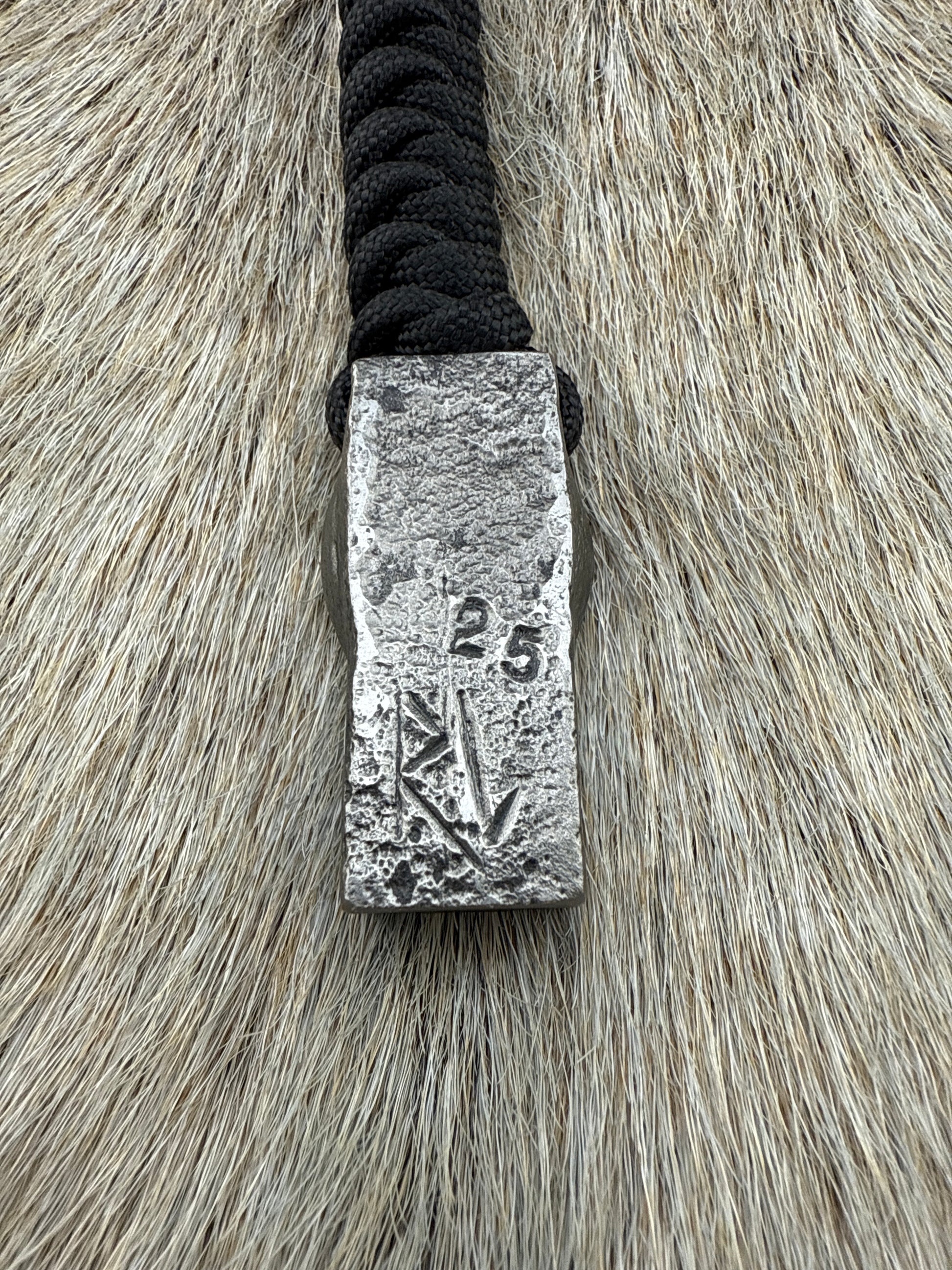 PocketCrusher Owl version forged from a railroad spike with 550 paracord lanyard and keyring.
